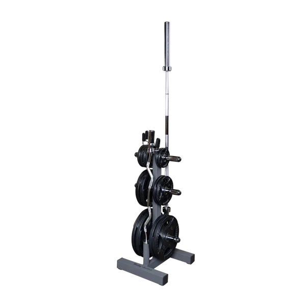 Heavy gauge 2″x 3″ and 3″ x 3″ welded steel construction. Six triple chrome plated Olympic weight plate storage posts. Super-tough ABS plastic ball-end storage post caps provide quick and easy alignment for weight plate loading. Four rubber foot tabs riveted on to bottom of base frame to protect your floor. Textured powder coat finish hides dust, dirt and finger prints. 2 bar holders, 1,000 lbs. weight capacity.