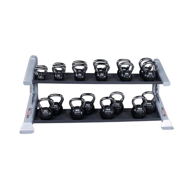 The SDKRKB Kettlebell shelf can hold a variety of KB Kettlebells, KBC Premium Kettlebells, KBL Kettleballs, or KBV Vinyl Kettlebells. The SDKRKB has a surface space of 59″ x 12″. Use the chart below to determine the approximate amount of kettlebells each shelf can hold.