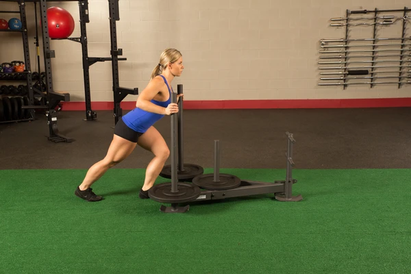 Weight sleds offer a wide variety of exercises to specifically address the many needs of today’s athletes and fitness enthusiasts. They can be pushed, pulled, or dragged to target muscle development, endurance or aerobic training. Weight sleds offer a variety of functional exercises designed to work your quadriceps, hamstrings, anterior & posterior chain and more!
