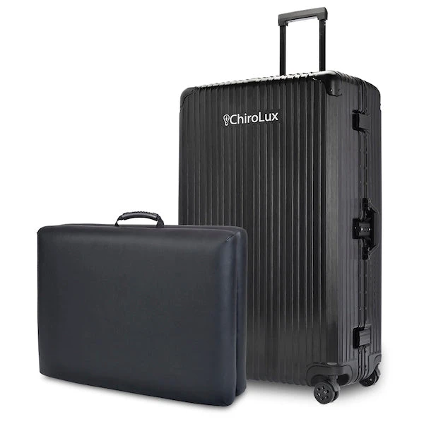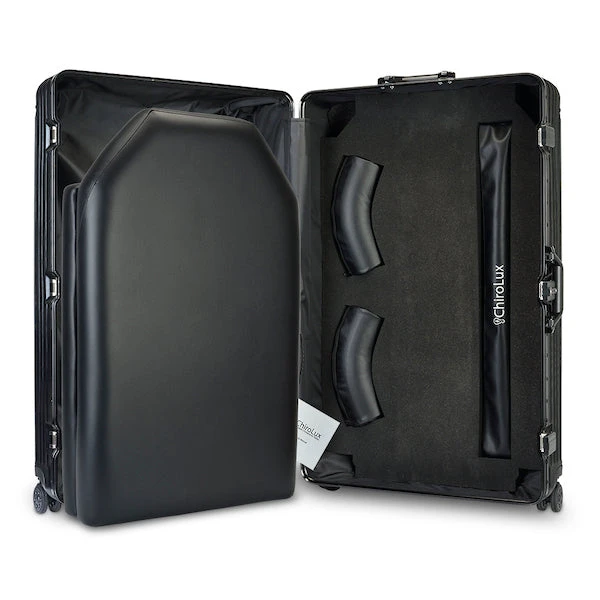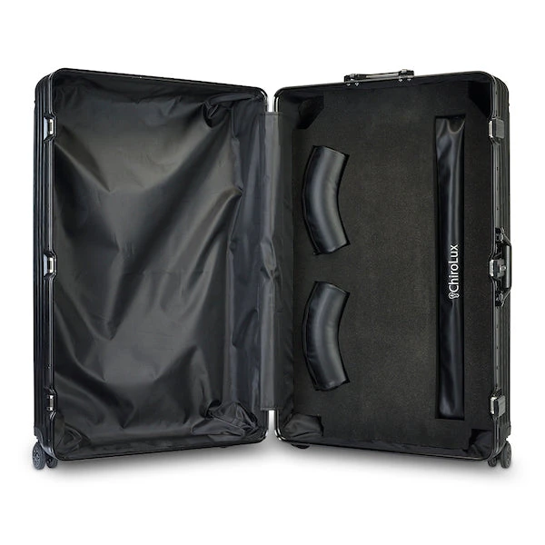 Designed with the airport in mind, this lightweight suitcase easily fits your ChiroLux Classic or Plus table, as well as all your ChiroLux accessories. The protective ABS hard shell with scratch-resistant finish provides unparalleled durability for your ChiroLux table. Four double spinner wheels, telescoping handle, and side mounted TSA locks ensure you are able to transport your ChiroLux table securely and easily.