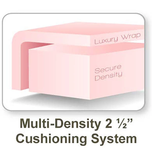 - Firm yet lightweight 2 ½” multi-density cushioning system