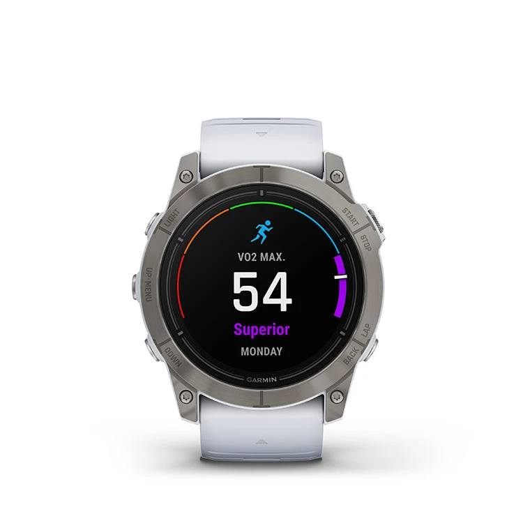 All day, every day — the epix™ Pro – Sapphire Edition smartwatch helps you conquer every hour. This ultimate high-performance smartwatch features a stunning AMOLED display. Go longer between charges with up to weeks of battery life in smartwatch mode. Rise to any challenge with advanced training features; hill score measures your climbing performance over time, and real-time stamina updates gauge your stamina potential. The bright LED flashlight provides convenient illumination when you need it. Prioritize your mental and physical wellness with 24/7 health monitoring features such as advanced sleep tracking, HRV status and more (data presented is intended to be a close estimation of metrics tracked). Navigate with preloaded TopoActive maps and ski resort maps; download even more regions for global adventures. Gain superior positioning accuracy in any environment while optimizing battery life, thanks to multi-band and multi GNSS with SatIQ™ technology.