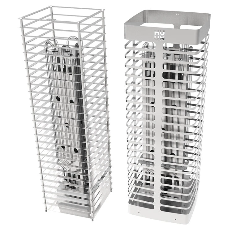 Steel is a slim electric sauna heater with remarkably small safety distances, which makes it perfect for saunas with limited spaces. Thanks to its well-optimized structure, the safety distances from the walls are brought down to just 2″ (5 cm) with smaller models and to 4″ (10 cm) with larger models. The HUUM STEEL heater also comes in an even slimmer 3.5 kW wall-mounted model, which is particularly suitable for very small sauna rooms.