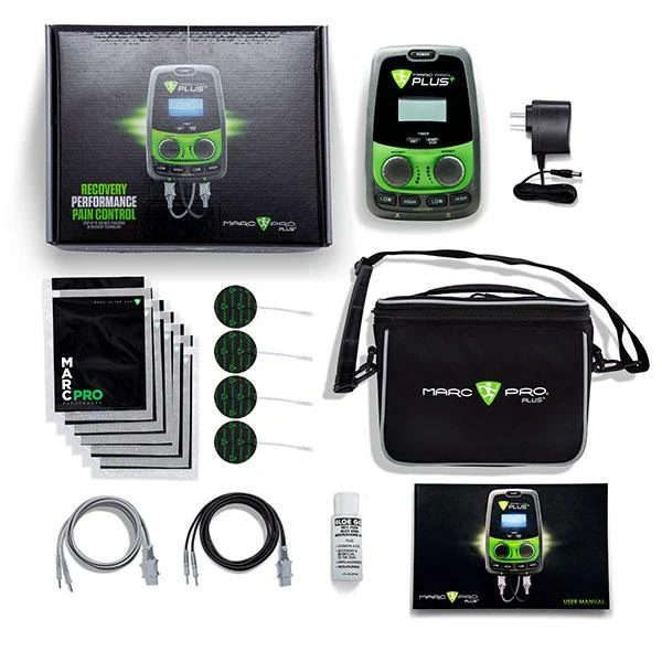 The Marc Pro Plus is a very easy to use, electrical muscle stimulator device designed for conditioning, recovery, performance AND pain relief. The Marc Pro Plus offers two different settings, 2Hz & 60Hz. The LOW, 2Hz setting provides the same benefits as the standard Marc Pro while the HIGH 60Hz setting provides pain relief to the affected area. The Marc Pro Plus can also be put into manual mode where you can control the Hz between 1-70Hz. . The patented technology provides active recovery for muscles without fatiguing them. Your results will speak for themselves. The Marc Pro Plus includes a high frequency setting that provides pain relief for up to hours after the device is turned off. The idea is that as you exercise or train, muscle tissue is being stressed; it is during the recovery period that strengthening takes place, hence why proper recuperation is an important part of any training regimen. The Marc Pro Plus aims to reduce recuperation time and ensure users are seeing the best results from every workout.