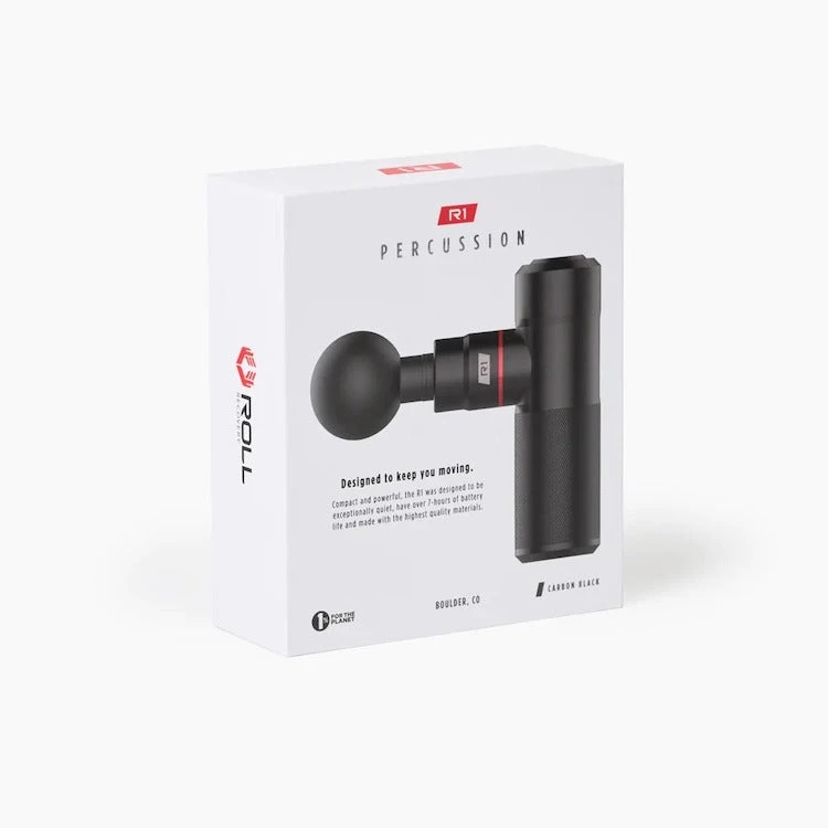 Introducing the R1â„¢ Percussion Device. Developed using feedback from elite and professional athletes, the R1 was designed with four key elements: compact and powerful, exceptionally quiet operation, over 7-hours of battery life, and built with the highest quality of materials.