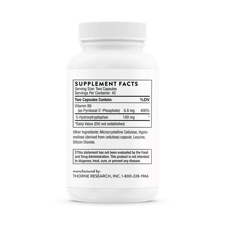 To further facilitate serotonin production, Thorne’s 5-HTP formula contains pyridoxal 5′-phosphate, the active form of vitamin B6 and the necessary cofactor for the conversion of 5-HTP to serotonin. 5-HTP is commercially produced by extraction from the seeds of the African plant, Griffonia simplicifolia.