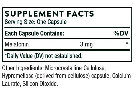 receptors, thus resulting in relaxation.* Thorne’s Melaton-3 supplies three mg of melatonin in each capsule, and