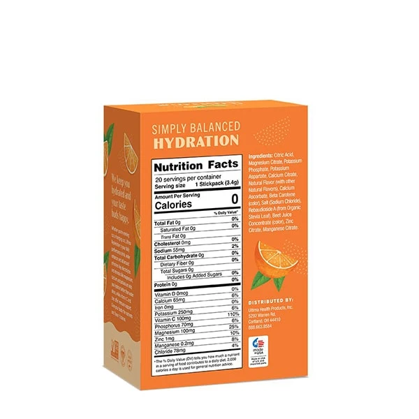Ultima Replenisher is an advanced, balanced hydration drink with 6 essential electrolytes and trace minerals. 20ct stick pack box
