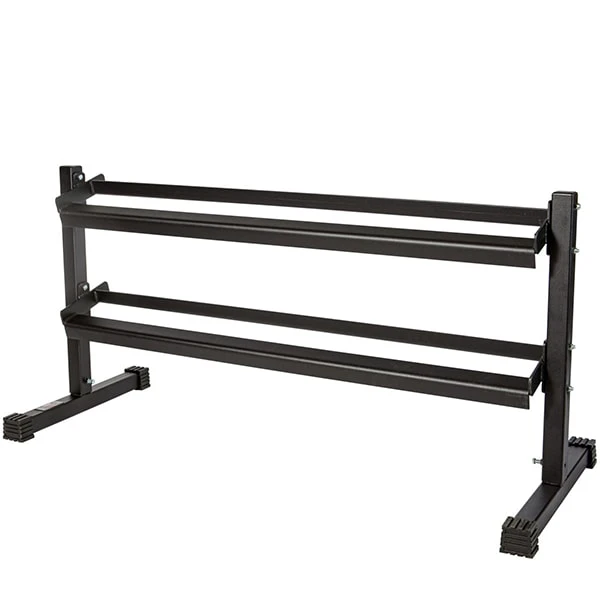 The 2 Tier Dumbbell Stand is perfect for in-home utilization. The rack features two tiers that can hold up to 10 pairs of various sized dumbbells.