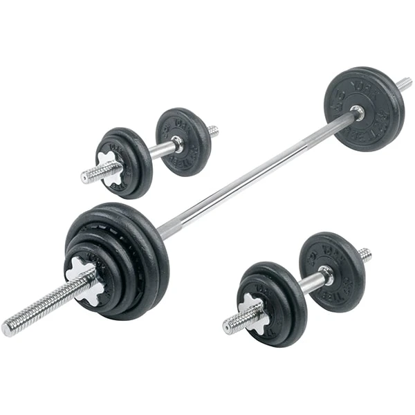 The Contour Cast Iron Dumbbell / Barbell Spinlock Set is a 1” Standard Plate and Bar Set. This set features the ability to build you own dumbbells with 14” dumbbell handles and several options of weight plates. The 6’ standard barbell can be utilized to do basic training exercises with moderate weight. Change and secure your plates with the easy to use spin lock collars. Save time, space, and money with this easy to use spinlock set. This is a great set for those who are new to weightlifting or for those who want to have versatility without a lot of equipment.